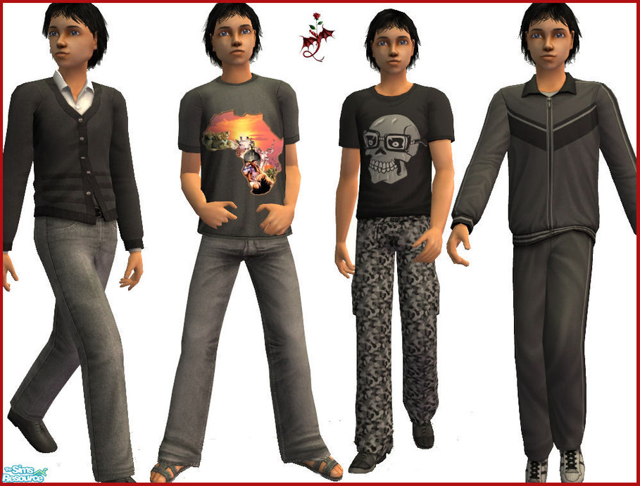A new set of clothes for your Male Teen Sim. Base Game only needed for the Africa T shirt