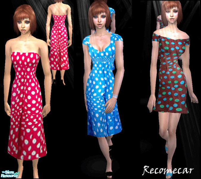 A collection of three polka dot dresses, including one blue, one red and one brown polka dot dress!Following meshes by Simchic needed: