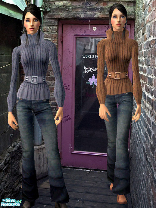 Stylish outfit featuring Prada jeans and a warm bulky sweater. Recolor of sweater texture by lliella and mesh by glamsims. The Prada jeans are by me and are also available on a separate download. Hope you enjoy :)