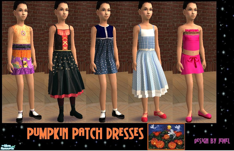 Five outfits for your little sims...from the pumpkin patch. Four dresses, one skirt, and one top.