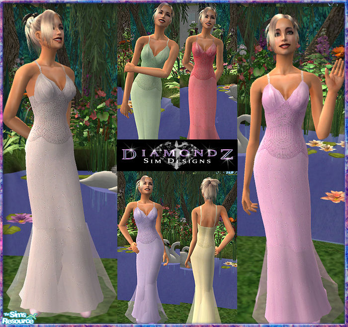 Long sparkly dresses with tons of sequins on top, and all throughout the skirt. The bottom of the dress has a sheer, see-through flare. These skins do not require any expansion packs.