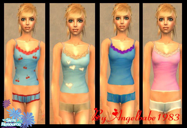 Here is a Pyjama Set for your Teen Female Sims. It\'s the textures from Teen Style Stuff except now in the form of a tank with boyshorts. Comes in 4 different colours, can be worn as Undies or Pyjamas and no mesh is needed. Enjoy!