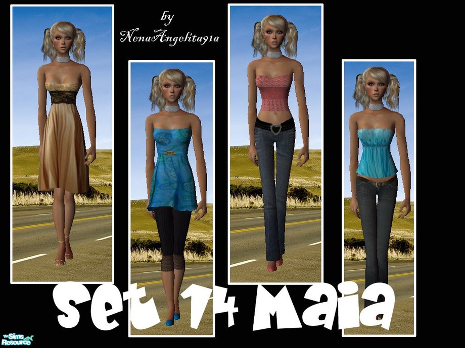 this set have 4 outfits....and you need the mesh 086, mesh 046, mesh 073, mesh 106 by Liana. You can find this mesh in her TRS site or in Liana Sims 2.