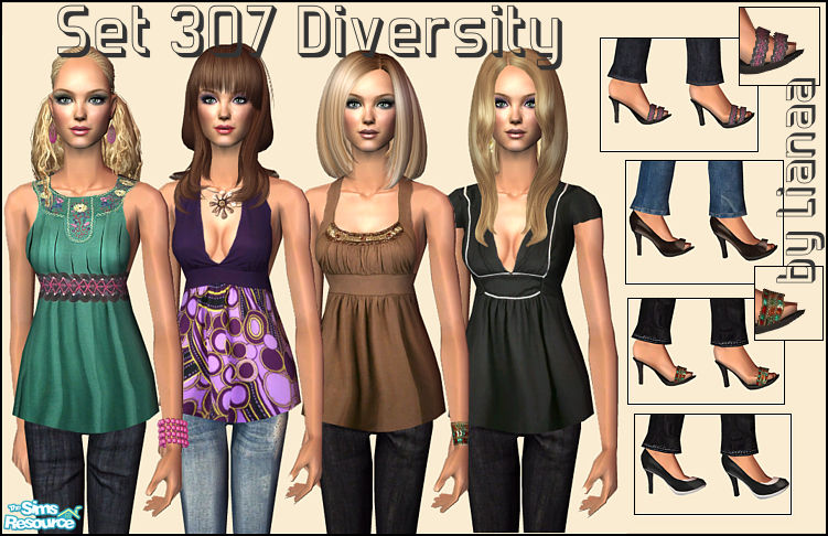 Set 307 Diversity by Lianaa - 4 casual outfits, new mesh included