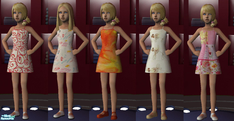 A set of five trendy shortdresses in different colours for your little simgirls. Credit for the great mesh to mimix5.