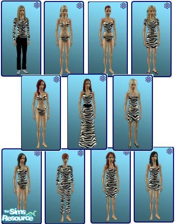 This set contains an everyday outfit, everyday skirt, everyday tank, formal dress, undies, three swimsuits, three nightgowns, and an athletic outfit. No meshes, EPs, or SPs needed!