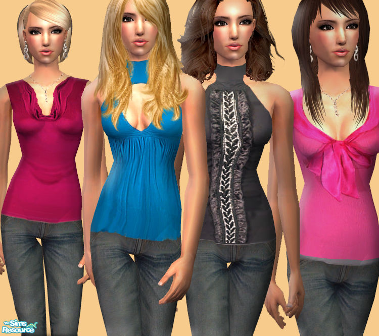 Set of 4 whole outfits. All have a bootcut jeans and a dressy top. REQ. Sunair Fashion T031 mesh.