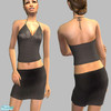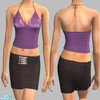 MIX & MATCH SET: this set includes 4 mini skirts and 4 tops. The skirts are pin striped and the tops are halter tops with satin straps and ruched bustline ***works also for Young adult female Sims***