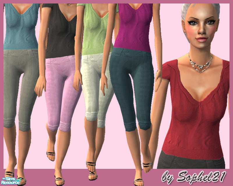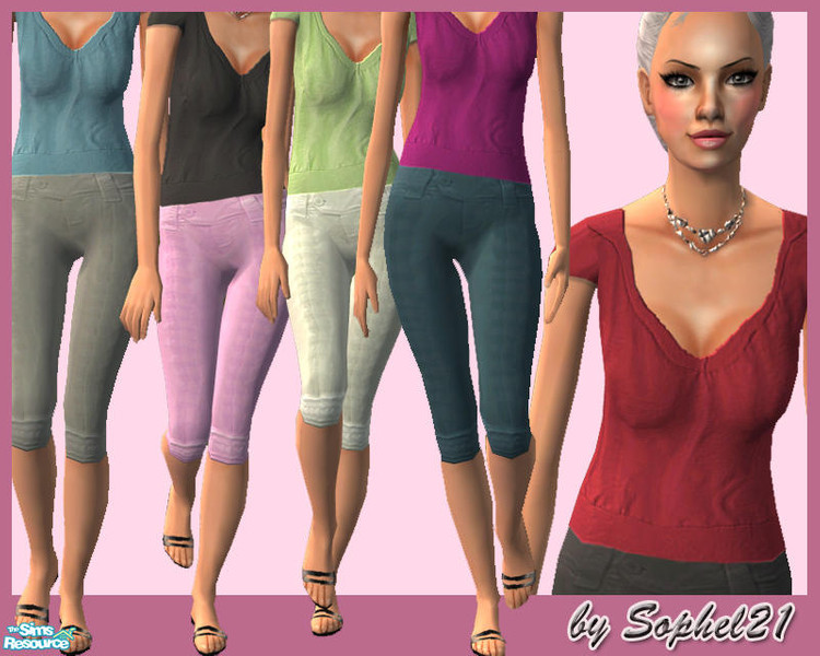 set of 6 whole casual summer outfits for female elder sims. Outfit comes with top, necklace, capri-pants and sandals. ***no mesh req.**