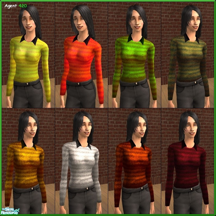Pick and choose your favorite colors or grab the whole set. For Adult Females, Top only. Just in time for winter, 8 Nice colorful striped long sleeve shirts with Black Collars. Set 2 of 2. - Agent 420