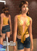 This set contains 4 daring tie-front shirt (braless) with denim shorts, and 3 tie-front shirt with denim skirt. All in luscious summer colors :o)