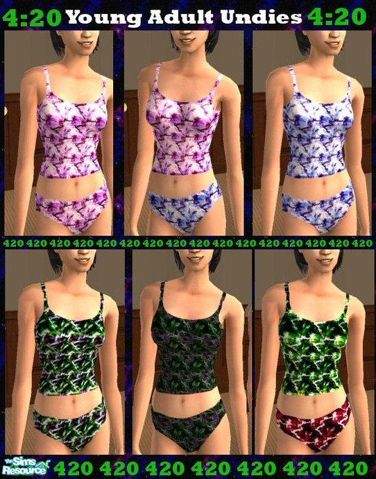 A pack of 6 pairs of undies for the ladies. 3 soft colors, and 3 bizzaro colors. Custom made for University Students, but Adult Females may also wear them. - Agent 420