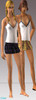White backless top with navy blue stitching and a miniskirt.