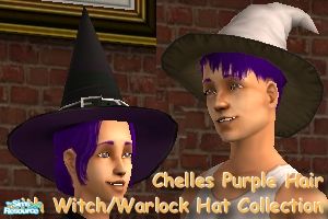 Chelle brings you these Purple recolours of the Maxis Witch and Warlock Hats from Apartment life. Available in Good, Evil and Neutral for (teen), (young adult, adult and elder).