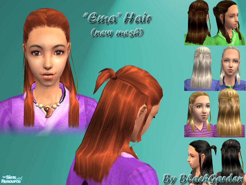 A more relaxed approach to half tied-back hair, inspired by Ema Skye\'s look in the Phoenix Wright series of games. In brown, black, red and blonde, correctly binned. The brown package also includes the grey recolour for elders. For children to elders.