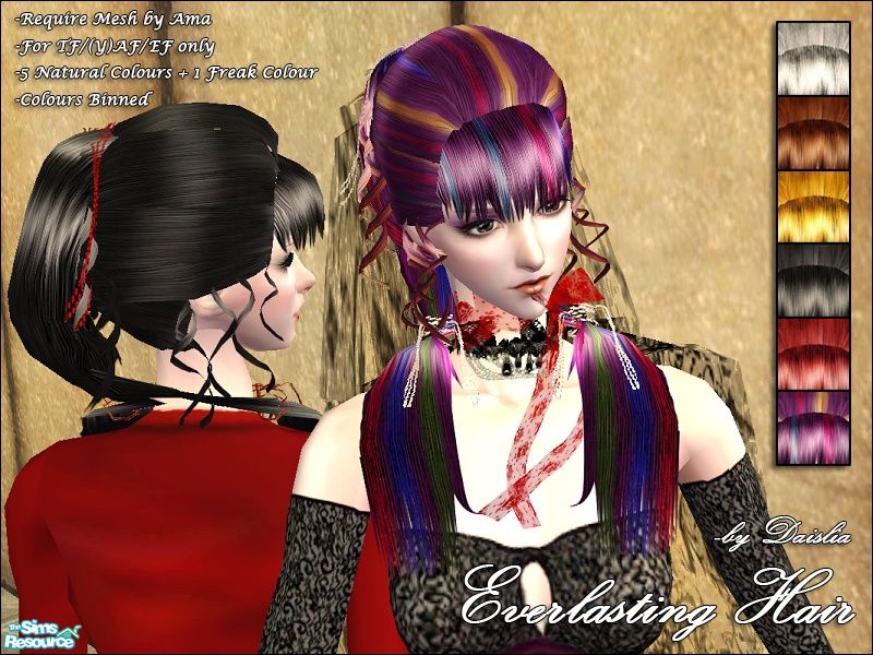 Retexture and re-alpha of Amasims female hair mesh 10. 5 natural colours + 1 freak colour total, from teen to elder, enjoy!