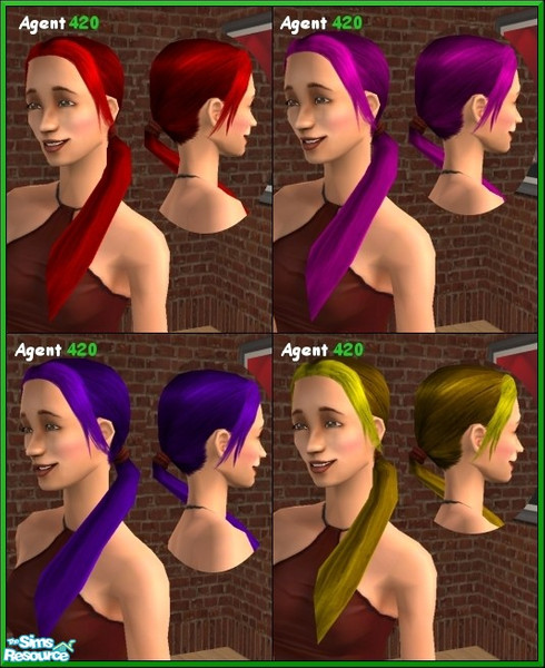 4 colors for some exotic sidewinder hair with lighter bangs/ponytail. New Style For Young Adult/Adult. Hair Color for Young Teen/Adult/Adult. Red, Violet, Gold and Purple. ***Requires '*MESH FILE* for Sidewinder Hair by Big Bad Shar'***. - Agent 420