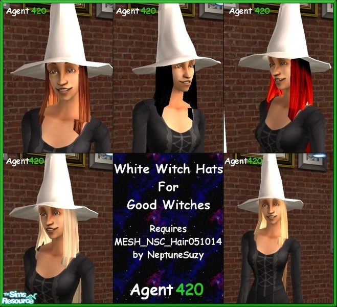 Some hats for the Good Witches out there that don't want to be seen in black. Nice Long Hair. For Young Adult/Adult/Elder. ***Requires 'MESH_NSC_Hair051014 by NeptuneSuzy*** - Agent 420