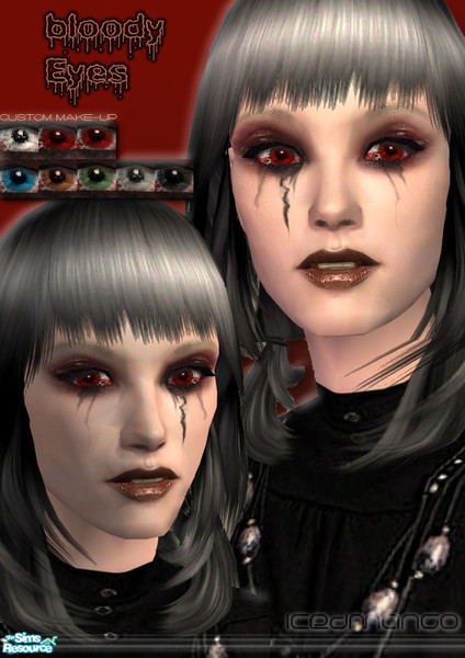 Something very different: Esp. for your Horror Sims or just for a Vampire Styling, or someone sprinkled Blood into your Sims' eyes. They are just bloody. Red Eye in 2 versions (side looking) and 7 different colors.