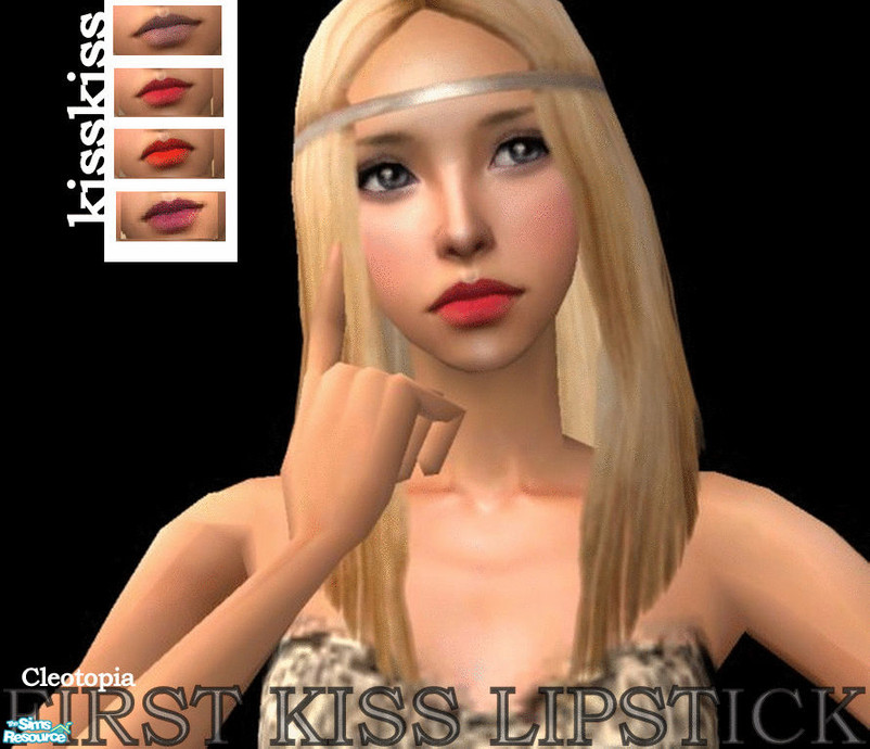 Four lipclosses for the ladies who never kissed; Your teen sims are actually young. But they have to have their first kiss; How to get a great first kiss? With \'First kiss\' lipstick! Four amazing lipsticks to make the first kiss amazing. By Cleotopia.