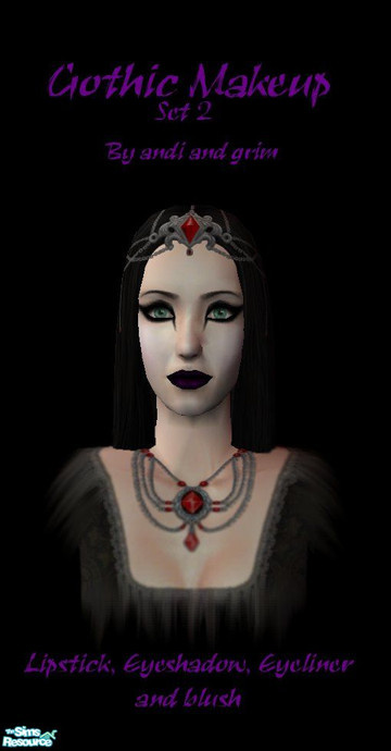 This is my second set of gothic makeup, it has black lipstick with a pink tint, black eyeshadow, black eyeline and white blusher. Download and enjoy!