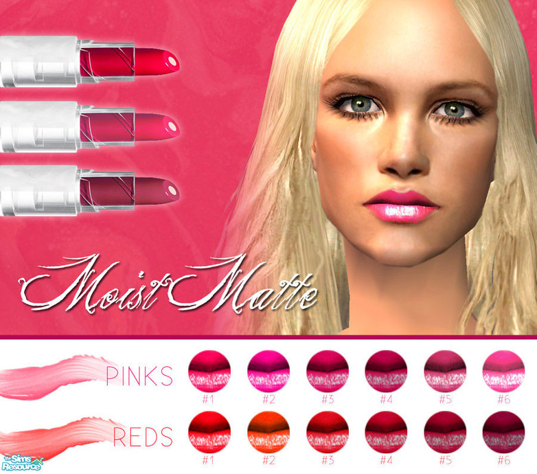 A soft, matte-effect lipstick in 12 rich shades. Your sims can enjoy full colour without the shine of a gloss.
