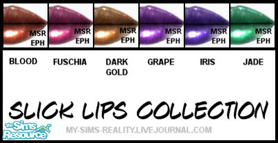 Set of 5 sleek,slick, and luscious lipcolors in Blood, Fuschia, Dark Gold, Grape, Iris, and Jade.