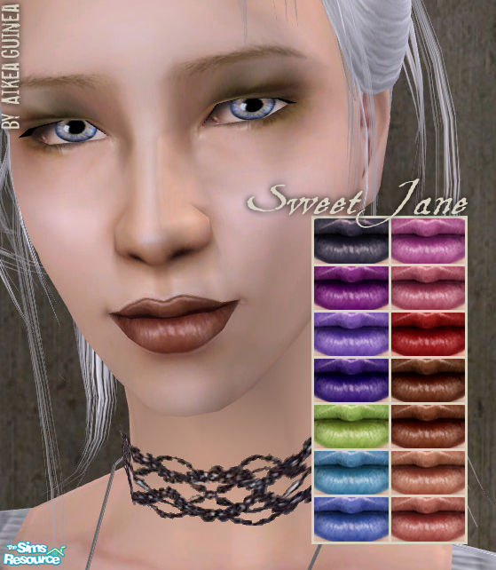 Sims 2 — Sweet Jane - Semi-Sheer Lipstick by aikea_guinea — Set of semi-sheer satiny lipsticks in 14 bold colors.