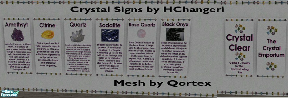This is a set created for new age/crystal shops. You will need Qortex's meshes for these to work: www.modthesims2.com/showthread.php?t=45647. See my profile for other retail creations.