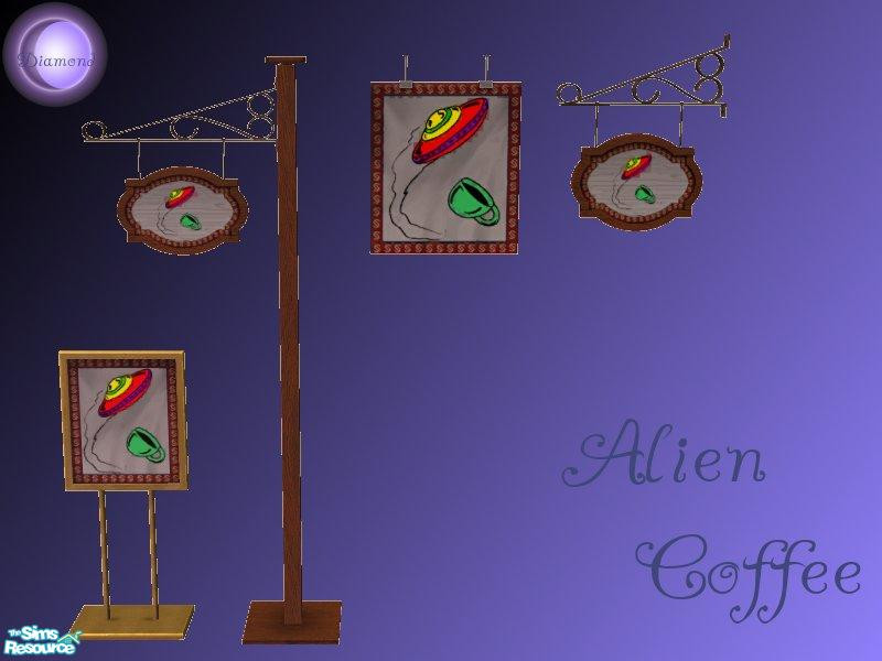 Sims 2 — D2DAlien Coffee Signs by D2Diamond — Needing some coffee on the edge of the galaxy? Then look for this tell tale