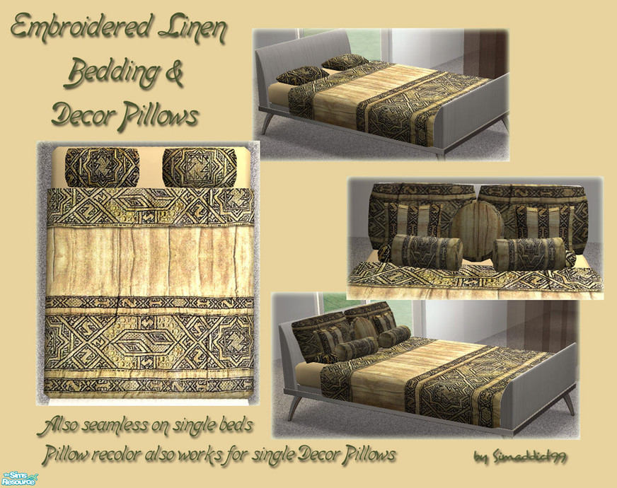 Earthy linen bedding accented with embroidered detail.
