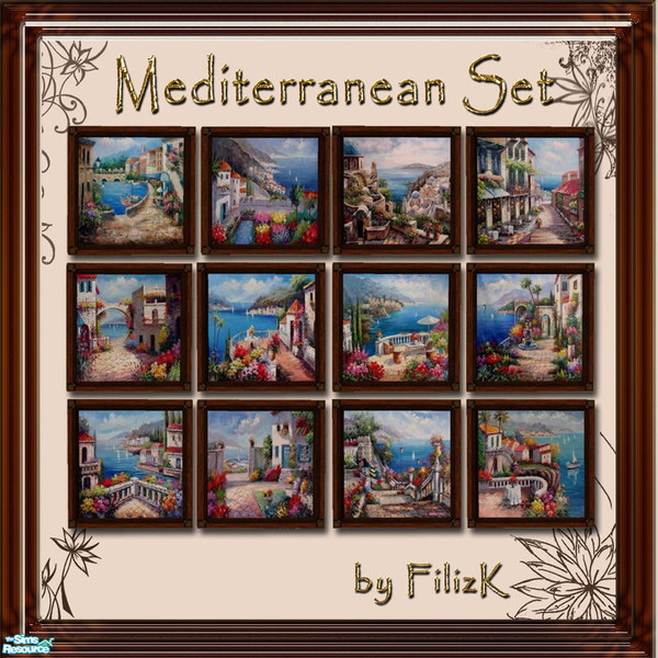 Bringing you the serenity and the beauty of Mediterranean. 12 recolors of "Bella Squared" painting by Maxis.