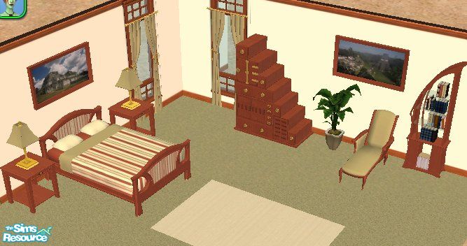 Sims 2 — Mexican Stripes Bedroom by love_42013 — Mexican inspired stripes, rich wood, and complimenting colors make for a