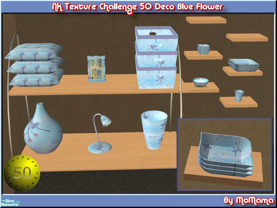 Sims 2 — NK TC50 Deco Blue Flower by MoMama — A deco set (STUD items) in a blue flowered pattern with an Asian flair.
