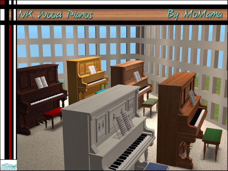 A handful of pianos in some basic woods for your Sims to show their talents.