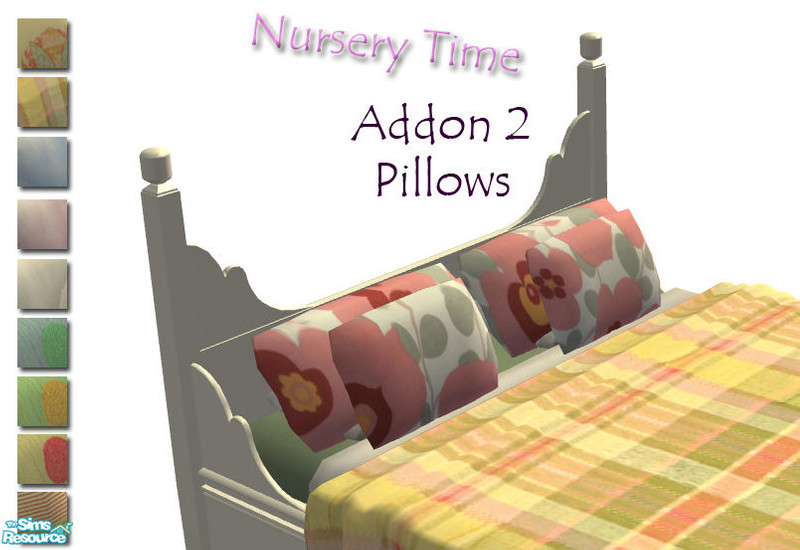 recolors of the \"Pillows for moms bed\", a mesh from Shino&KCR. This set adds more color variants to the PB children room of Shino&KCR and matchs my previous Nursery Time sets.