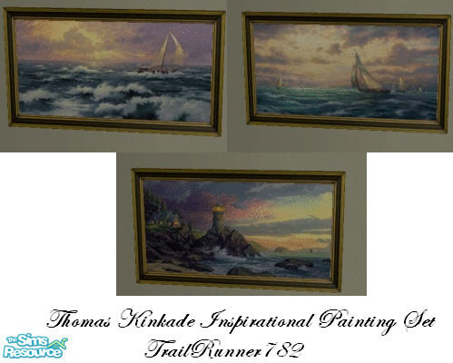 Thomas Kinkade is one of the most talented and famous living American artists. Known for the way he paints light, his paintings match the light of day. This set consists of 3 paintings from his Inspirational Collection: Perseverance, New Horizons, and Rock of Salvation. Recolor of Rolling Hills.
