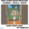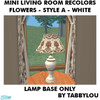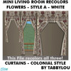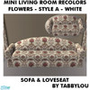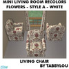 Flowers (Style A) Motif in White recolors of the Base Game Sofa (plus Loveseat), Chair, Curtains, & Lamp Shade & Base for your Mini Living Pleasure. Mix & Match with any furniture sets you like. Enjoy!