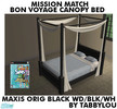 Maxis Original Black Wood, Black Headboard Insert & White Drape Recolor of the Bon Voyage HOH Canopy Bed to go with my BV HOH Furniture Set in MM Original Black Wood. Last Bed Requested by Cleanie2005 to use with MsBarrows BV match Bedding Beds. Requires Bon Voyage EP. Enjoy!