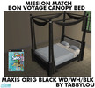 Maxis Original Black Wood, White Headboard Insert & Black Drape Recolor of the Bon Voyage HOH Canopy Bed to go with my BV HOH Furniture Set in MM Original Black Wood. Last Bed Requested by Cleanie2005 to use with MsBarrows BV match Bedding Beds. Requires Bon Voyage EP. Enjoy!
