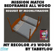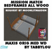 All wood Mission Match recolor of the four Post Bed Frame & Single A La Mode Bed frame. This file recolors both. This was a request from MoonlitMaiden for plain wood recolor, no inlay decor. Requires Seasons. Enjoy!