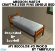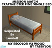 Recolor of Craftmeister\'s Pine Single Bed Frame in OFB Mission Woods and my wood recolors. Requested by LaurieR. Enjoy!