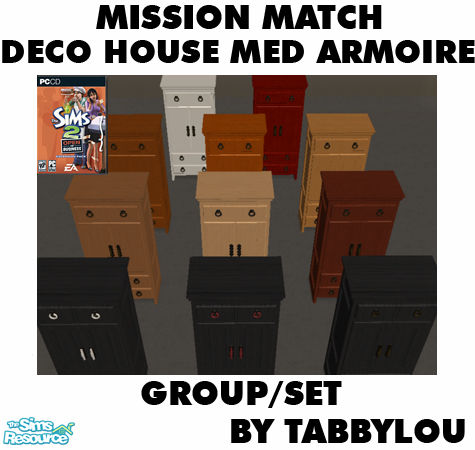 Recolor of the Medium Decorative House Armoire to match the request by LyssaKi for an armoire to match the Mission Style furniture. Requires OFB EP. Enjoy!