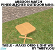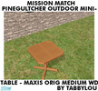 Recolor of base game Pinegultcher\'s Outdoor MiniTable in mission OFB woods and my wood recolors. Requested by Quinnie. Enjoy!