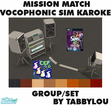 Recolor of the VocoPhonic Sim Karoke Machine to match the Mission style furniture woods & my wood recolors. Requires Nightlife EP. Requires CEP. Enjoy!