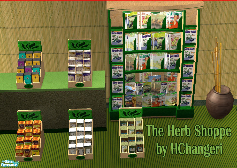 I created the sign ages ago (see my profile) and finally created the rest of the shop. There are 9 files total, all are recolors so the functions remain the same.