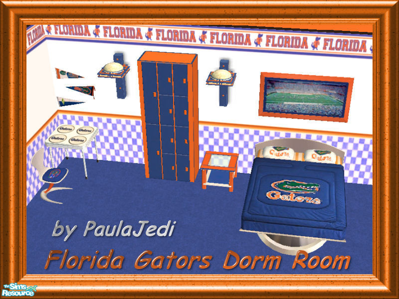 Florida Gators Dorm Room - Seminole fans...I'm sorry. LOL!!! Includes: Bedding, night stand, picture, wall light, locker, study table, chair, pennant, and a wall.