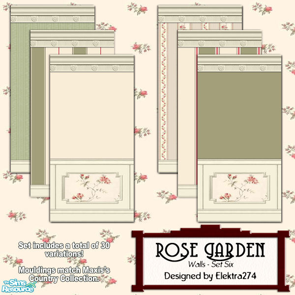 6 of 12 wall sets designed to coordinate with my \"Rose Garden\" floor collections. This collection also coordinates well with Maxis\'s Country Collection.