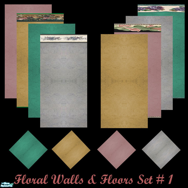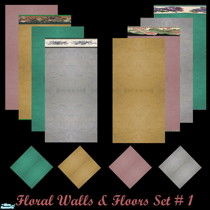 This set includes 12 items : 8 walls and their 4 matching floors. The walls type is \"Wallpaper\" and the floors type is \"Carpet\". The sound of the floor is also \"Carpet\". Each item cost 20. Hope you\'ll like the set. Enjoy.