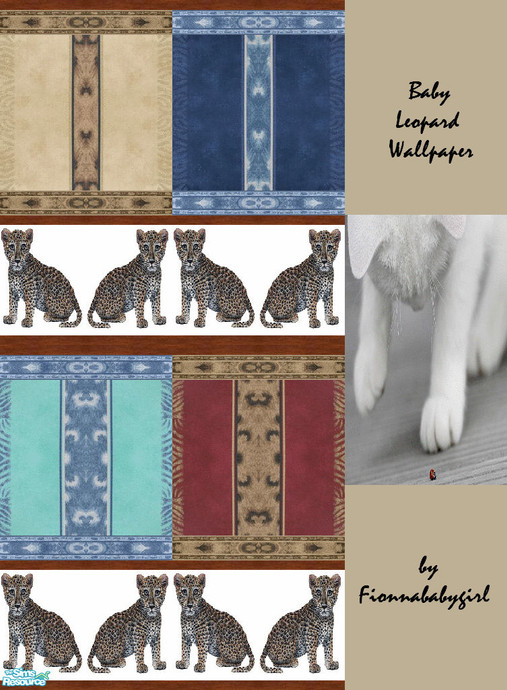 This is a set of 4 walls featuring baby leopards along the base and leopard style wallpaper up top. created for the wild at heart sim. by fionnababygirl